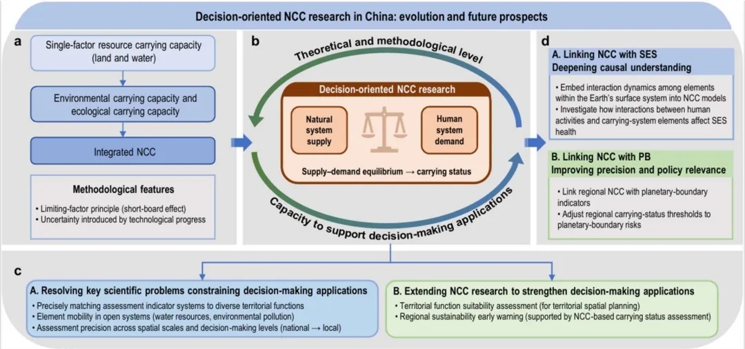论文系统回顾了中国决策导向型自然承载力研究的演进脉络,综述了我国在可持续发展领域,形成一条基于均衡模型的自然承载力研究路径,在灾后重建规划、主体功能区战略和国土空间规划、区域可持续性预警等决策领域得到广泛应用,推动了全球可持续性学术研究,提升了我国决策的科学化水平,在我国生态文明建设和国土空间格局优化中发挥了重要作用。