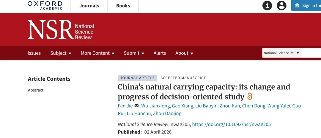 近日,中国科学院地理科学与资源研究所区域可持续发展分析与模拟重点实验室樊杰团队在《National Science Review》发表综述论文《China’s natural carrying capacity: its change and progress of decision-oriented study》。